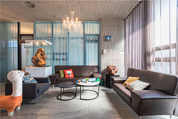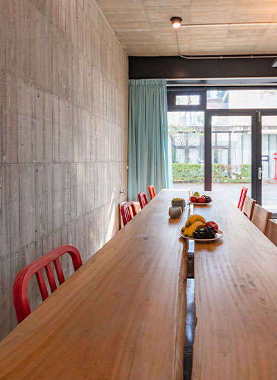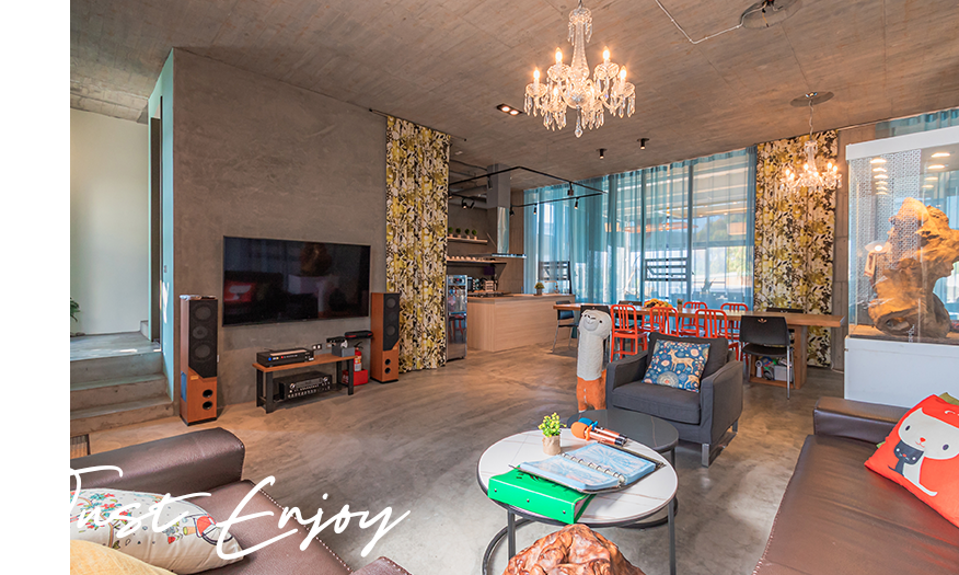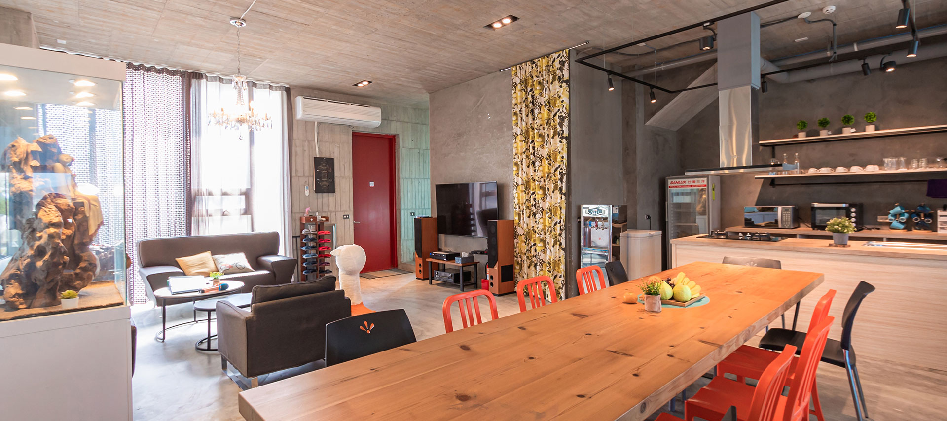 樸實內斂的室內清水模裝潢,配上點睛的豔麗設計,就像高嶺之花遇見明豔小甜餅,總能產生令人怦然心動的化學反應 ~