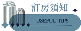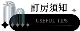 | ✦ | 訂房確認後,請於2日內(不含假日)預付房價50%訂金,逾期恕不保留客房,不便處請見諒。 |